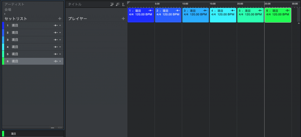 ※プレイヤー毎に増やしますので全6曲だとプレイヤー1だけで6個、プレイヤー2と3もあるので全曲。全トラック合計18個必要になります