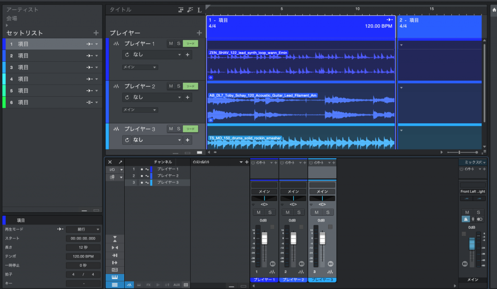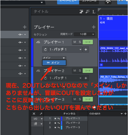 デフォは「プレイヤー」となってますので「オケ1」とか「クリック」とかリネームしながら設定してください